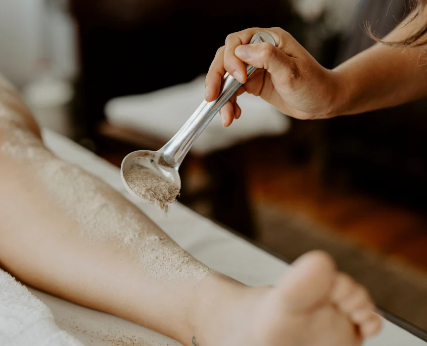 Herbal dry massage that exfoliates, energizes, and refreshes your entire body.